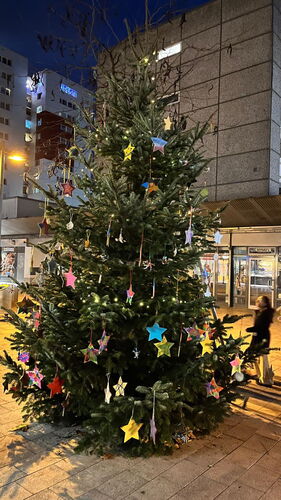 Am 1. Dezember wurde der große Weihnachtsbaum im Rahmen der Adventsfenster von den Kita-Kindern der Kitas Die Wilden Füchse, dem SKM Familienzentrum, der evangelischen Kita Görlinger Zentrum und der katholischen Kita Christi Geburt mit selbstgestalteten Holzsternen verschönert. Auch die Kinder und Jugendlichen der OT Bocklemünd und der Jugendgruppe FairStärken haben den Baum mit selbstgebastletem Baumschmuck verschönert.
