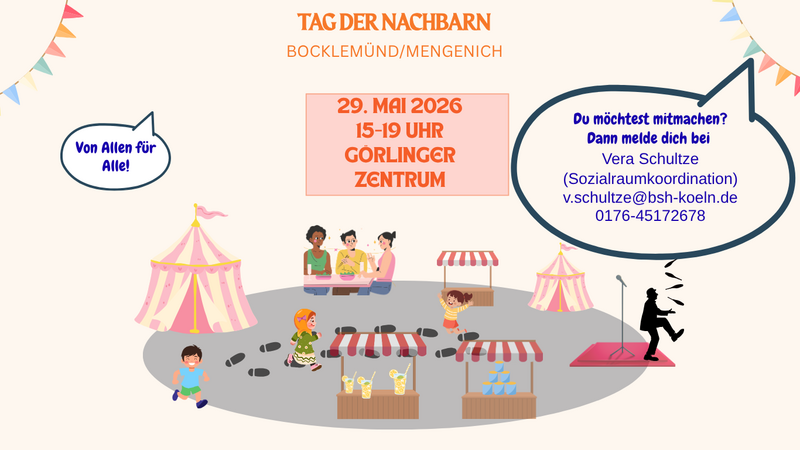 Ein buntes Fest für alle Nachbarinnen und Nachbarn aus Bocklemünd und Mengenich. Mit Jahrmarkt, Essensständen, Bühnenprogramm und tollen Mitmach-Aktionen!